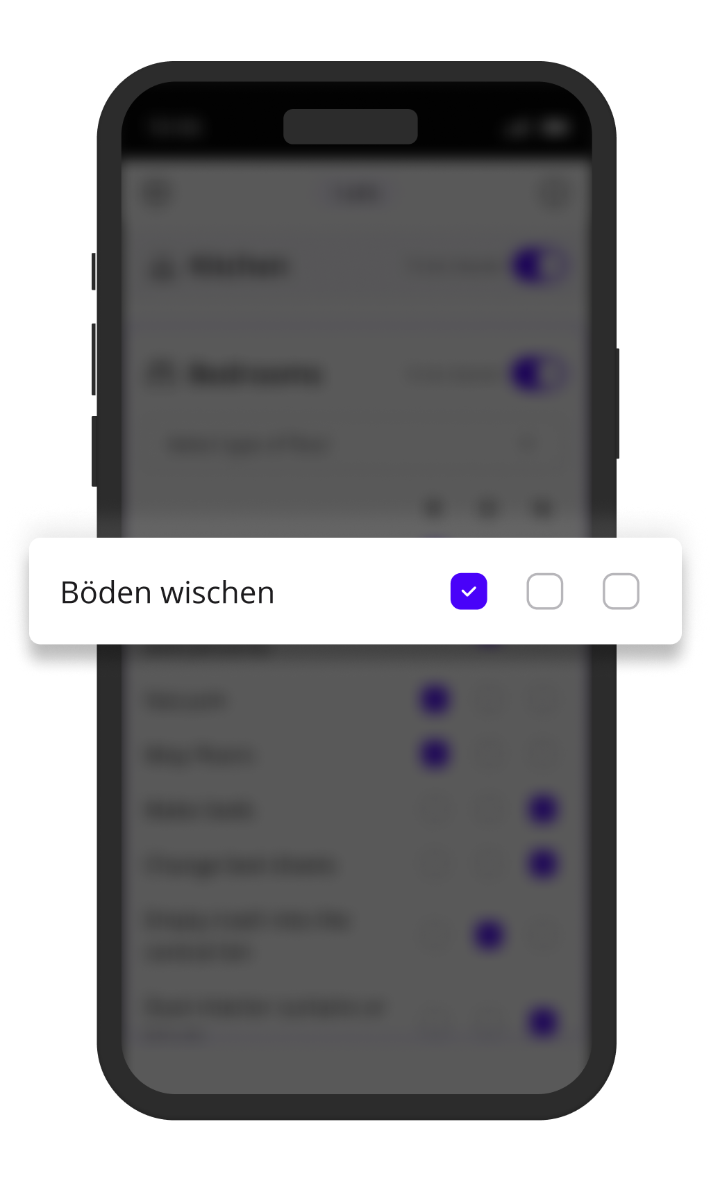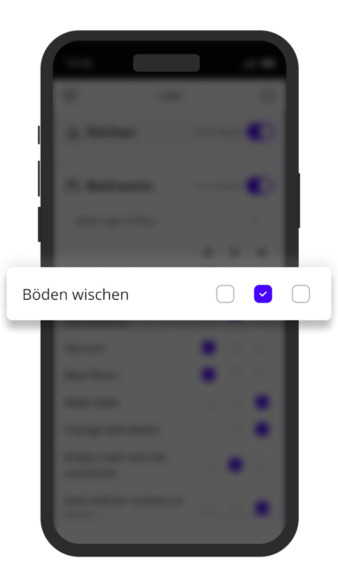 Sie entscheiden, welche Räume gereinigt werden und welche nicht. Ihre Präferenzen stehen mit unserer flexiblen Checkliste an erster Stelle.